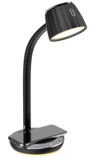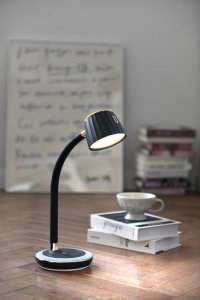Moderná stolná lampička kombinuje kvalitné osvetlenie s praktickým bezdrôtovým nabíjaním Qi s výkonom 5W . Vybavená dvoma nezávislými svetelnými zdrojmi – hlavným svetlom s výkonom 6 W a nočným podsvietením 1,5 W , každé s vlastným ovládaním a tromi úrovňami jasu.