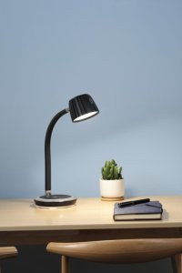 Ohybné rameno umožňuje presné smerovanie svetla podľa potreby. Stabilná základňa s protišmykovou úpravou zaisťuje bezpečné umiestnenie na pracovnom stole či nočnom stolíku.