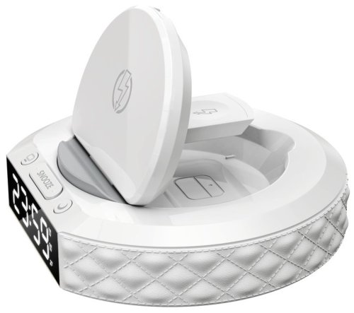 Multifunkčný budík s veľkým displejom na zobrazenie aktuálneho času, tromi úrovňami jasu i možnosťou displej úplne vypnúť pre ničím nerušený spánok. Samozrejmosťou je možnosť nastavenia dvoch časov budíka aj funkcie odloženia. Prednosťou je navyše integrovaná bezdrôtová Qi nabíjačka na dobíjanie kompatibilných mobilných zariadení ako sú telefóny, hodinky a slúchadlá výkonom až 10 W. Napájanie je realizované cez USB-C port. Pre zálohovanie času v prípade výpadku elektrickej siete je v zariadení vymeniteľná batéria CR2032 .