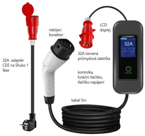 Cestovná nabíjacia stanica pre elektromobily EV/PHEV s výkonom 22 kW prináša rýchle a efektívne dobíjanie, či už ste na cestách, doma alebo na nákupnom parkovisku. Je vybavená káblom, ktorý na jednej strane disponuje konektorom CEE a na druhej strane zástrčkou typu TYPE-2 , čo umožňuje kompatibilitu so širokým spektrom elektromobilov a plug-in hybridov. Vďaka funkcii Plug & Play sa nabíjanie vozidla spustí automaticky po pripojení nabíjačky k vozidlu. Kompaktný dizajn, inteligentné technológie a LED displej na zobrazenie teploty, doby nabíjania a skutočného prúdu zaisťujú spoľahlivú prevádzku a bezpečné dobíjanie. Samozrejmosťou je ochrana proti prepätiu alebo nízkemu napätiu, proti nadmernému zaťaženiu (samočinná obnova), proti blesku a proti prehriatiu.
