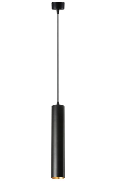 Závesné bodové svietidlo PUNTO predstavuje kvalitné kovové svietidlo v elegantnom, matne čiernom prevedení, ktoré je ideálnou voľbou pre funkčné osvetlenie súčasných interiérov. Kovová hlava je zavesená na nastaviteľnom závese s dĺžkou až 100 cm, umiestnenom na základni s priemerom 6 cm. Osadené je päticou GU10 pre inštaláciu žiarovky o max. príkone 9 W . Hlavu svietidla je možné pre ľahšiu inštaláciu žiarovky odskrutkovať. Súčasťou balenia je zlatý krúžok, ktorým je možné upraviť vzhľad svietidla na čiernozlatý.