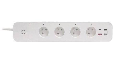 Kompaktný predlžovací prívod so štyrmi zásuvkami, tromi portami USB 2.0 a jedným portom USB-C s podporou bezdrôtového Wi-Fi rozhrania a hlasového ovládania Amazon Alexa a Apple Siri . Je možné s ním teda pripojiť nielen elektrické spotrebiče, ale súčasne nabíjať až štyri mobilné zariadenia do max. celkového nabíjacieho prúdu 5,4 A . Samozrejmosťou je aj ochrana proti preťaženiu a skratu.