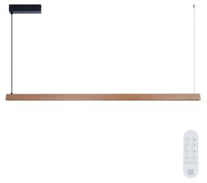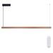 Dizajnové závesné LED svietidlo kombinujúce prírodné drevo s modernou smart technológiou.