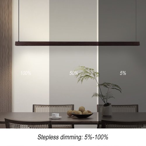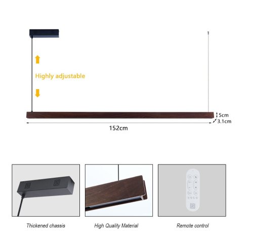 S dĺžkou 152 cm a kombináciou priameho a nepriameho osvetlenia UP/DOWN vytvára ideálnu atmosféru v kuchyni, jedálni alebo obývačke. Orechové drevo s čiernou montážou dodáva interiéru elegantný a moderný vzhľad pri zachovaní prírodného charakteru materiálu.