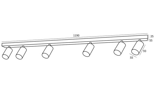 Séria bodových svietidiel PUNTO predstavuje kvalitné kovové svietidlá v elegantnom, matne čiernom prevedení, ktoré sú ideálnou voľbou pre funkčné osvetlenie súčasných interiérov. Svietidlá môžu byť inštalované ako nástenné aj stropné , čo zvyšuje ich flexibilitu a univerzálnosť. Šesť smerových hláv je nerovnomerne rozložených na 119 cm dlhej základni a vďaka pohyblivým kĺbom je možné svetelné pruhy zacieliť presne tam, kde je to potrebné. Osadené je šiestimi päticami GU10 pre inštaláciu žiaroviek o max. príkone 6× 9 W . Hlavu svietidla je možné pre ľahšiu inštaláciu žiarovky odskrutkovať. Súčasťou balenia je sada zlatých krúžkov, ktorými je možné upraviť vzhľad svietidla na čiernozlatý.
