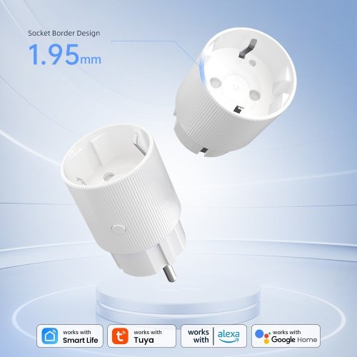 Elegantná múdra Wi-Fi zásuvka s tenkým dizajnom a inteligentným RGB podsvietením pre prehľadné zobrazenie aktuálneho zaťaženia.