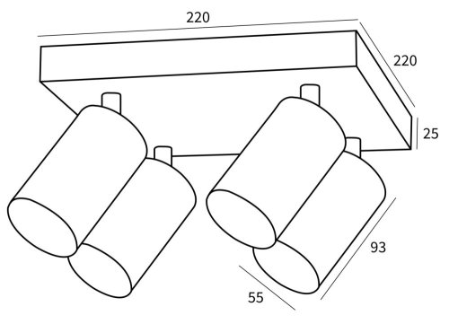Séria bodových svietidiel PUNTO predstavuje kvalitné kovové svietidlá v elegantnom, matne čiernom prevedení, ktoré sú ideálnou voľbou pre funkčné osvetlenie súčasných interiérov. Svietidlá môžu byť inštalované ako nástenné aj stropné , čo zvyšuje ich flexibilitu a univerzálnosť. Štyri smerové hlavy sú umiestnené na základni o veľkosti 22 × 22 cm a vďaka pohyblivým kĺbom je možné svetelné pruhy zacieliť presne tam, kde je potreba. Osadené je štyrmi päticami GU10 pre inštaláciu žiaroviek o max. príkone 4× 9 W . Hlavu svietidla je možné pre ľahšiu inštaláciu žiarovky odskrutkovať.