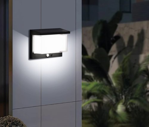 Výkonné vonkajšie solárne LED svietidlo s PIR senzorom pohybu a štyrmi režimami svietenia.