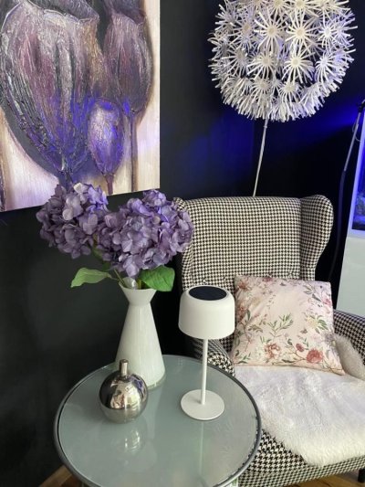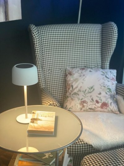 Dokonale prevedená LED solárna lampička vhodná na použitie pre vonkajšie priestory. Biela kovová konštrukcia a teplé biele svetlo z nej robí štýlový vizuálny doplnok, ktorý vytvára príjemnú atmosféru napríklad na terase. Samozrejmosťou je možnosť nastavenia intenzity osvetlenia . Vďaka zabudovanému solárnemu panelu a batérii nepotrebuje prívod elektrickej energie , stačí nechať cez deň na slnečnom svite. Batéria má kapacitu 3600 mAh a ponúka pracovnú dobu až 5 hodín pri plnom nabití. Doba nabíjania pri priamom svetelnom svite je 3 až 3,5 hodiny . Lampičku je možné tiež v prípade potreby dobiť pomocou USB-C kábla (nie je súčasťou balenia).