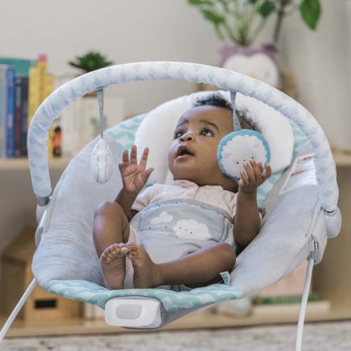 Odnímateľná hrazdička s 2 hračkami zabaví, zatiaľ čo upokojujúci pohyb vibrujúceho sedadla pomáha upokojiť.