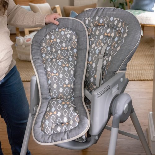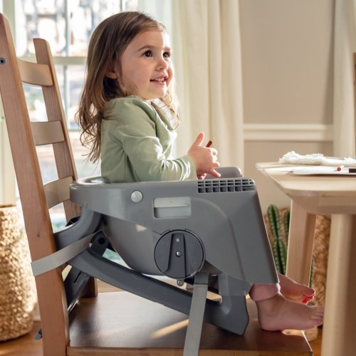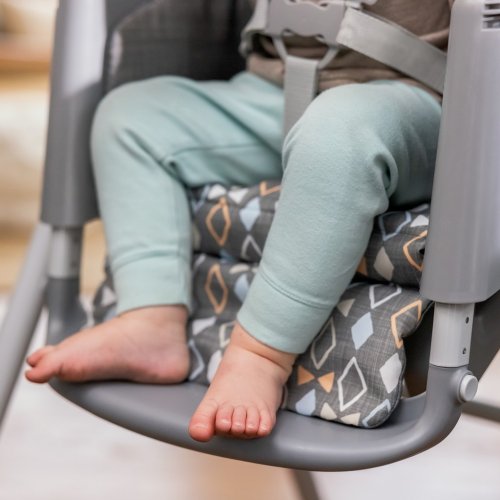 Ergonomický dizajn stoličky pomáha s posturálnou stabilitou, zatiaľ čo viacpolohová nastaviteľná opierka nôh zabraňuje viseniu nôh a ponúka väčšie pohodlie, aby sa dieťa mohlo sústrediť na jedlo. Dizajn sedenia 90/90/90 udržuje nohy dieťaťa v optimálnej polohe v 90-stupňovom uhle, čím podporuje pohodlie a správne držanie tela. Sedaciu podložku a vložku je možné prať v práčke.