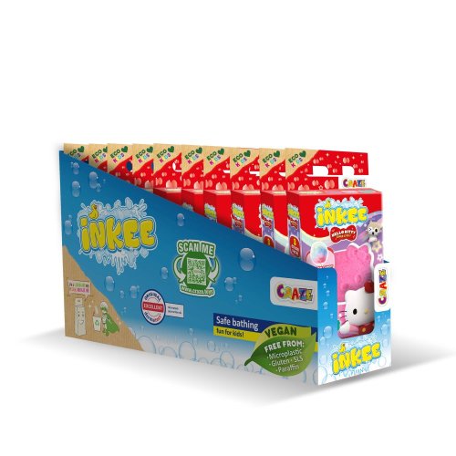 Balenie bomby do kúpeľa (3x15g) s tvarom Hello Kitty. Balené v kartónovej krabici s okienkom.