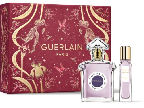 Insolencia od Guerlain je kvetinovo-ovocná vôňa vytvorená pre ženu, ktorá spája eleganciu, zmyselnosť a ľahko nespútaný pôvab. V úvode vás okamžite očarí jemná fialka, ktorej neha dodáva kompozícii sofistikovaný charakter. Nasledujú pomarančové kvety prežiarené sviežosťou a šťavnatosťou, ktoré sa dokonale snúbia so sladkou lesnou jahodou. V základe sa rozvíjajú hrejivé tóny kosatca, vanilky, fazuľa tonky a santalového dreva, ktoré kompozícii prepožičiavajú krémovú hĺbku a zamatovú zmyselnosť. Celok pôsobí sladko, žensky a romanticky – ako pocta nežnej stránke každej ženy. Vôňa Insolence bola uvedená na trh v roku 2021. Súčasťou sady je: