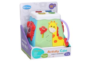Interaktívna kocka. Veľkosť 13 cm. Batérie 3xAA nie sú súčasťou. Tlačidlo on/off, vydáva svetelné a zvukové efekty.