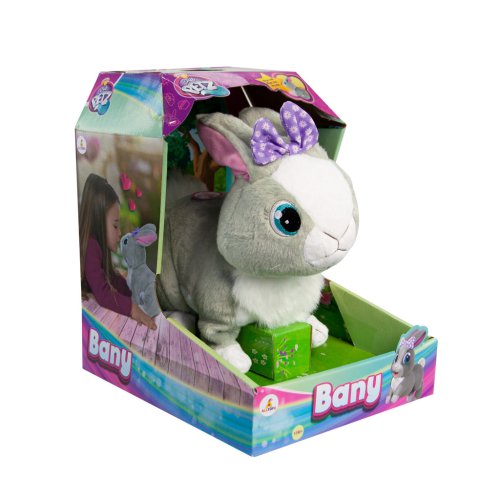 Interaktívny, plyšový zajačik Bany reaguje na zvuky pohybom a hýbaním ušami. deti od 18 mesiacov. Králiček je dodávaný s fialovou alebo ružovou. mašľou Farbu nemožno vybrať, zasielame náhodným výberom.