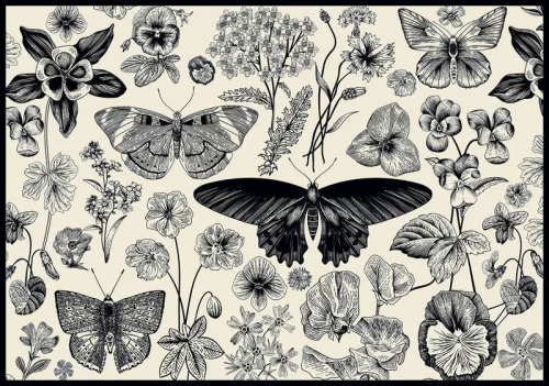 INTERDRUK Puzzle Flowers: Motýle a kvety 500 dielikov