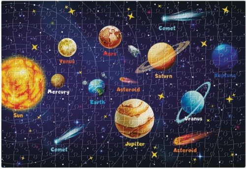 Súčasťou balenia je aj hárok so samolepkami. Rozmer zloženého puzzle cca 48 x 33 cm