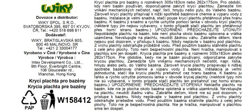 Rozmery: dĺžka 305 cm x šírka 183 cm + previs 51 cm Hmotnosť: 2,06 kg