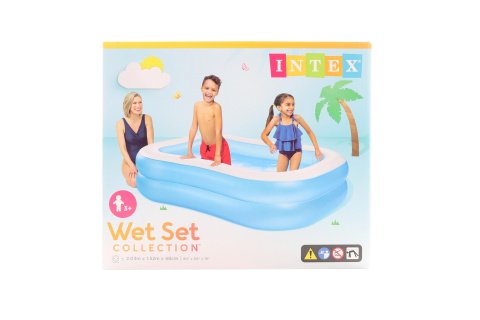 Oválny modrobiely nafukovací bazén. Veľkosť: 203 x 152 x 48 cm. Objem vody: 540 litrov. Výška vody v bazéne cca 34 cm. Vpusť na dne bazéna . Záplata pre rýchlu opravu. Rozmer balenia cca 36 x 30,5 x 12 cm. Vek: 3+