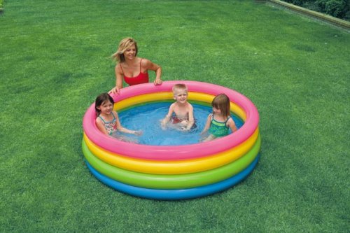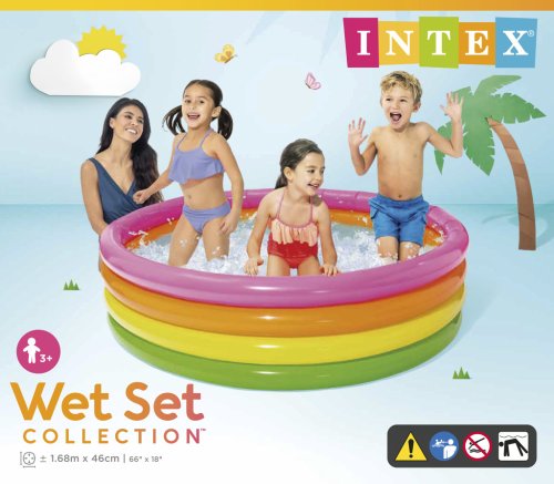 Nafukovací bazén so 4 komorami. Veselý detský nafukovací bazén kruhového tvaru s priemerom 168 cm. Týmto bazénom určite oslníte svojich najmenších a rozžiarite svoju záhradu. Bazén má vypúšťací ventil. Objem vody pri naplnení do výšky 37 cm: 780 l. Rozmery 168 x 46 cm. Vhodné pre deti od 3 rokov.