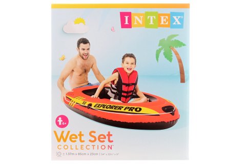 INTEX Čln Explorer Pro, 137 x 85 x 23 cm. Nosnosť max 40 kg. Vek 6+ , Tri vzduchové komory. Záchytné lano po celom okraji. Opravná záplata priložená.