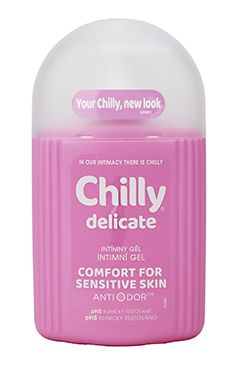 Chilly Intima Delicate je gél na každodennú intímnu hygienu. Má špecifické ochranné a upokojujúce vlastnosti. Je určený na veľmi citlivú pokožku a sliznicu. Obsahuje Aloe a Hamamelis, vďaka čomu podporuje obnovenie fyziologickej rovnováhy slizníc, ktoré sú nevyhnutné na ochranu intímnych partií. Je šetrný k intímnym partiám aj v prípade podráždenia. Možno ho použiť aj pri začervenaní či po pohlavnom styku. Gél má zvláčňujúci účinok a je hypoalergénny, teda nehrozí žiadna alergická reakcia.