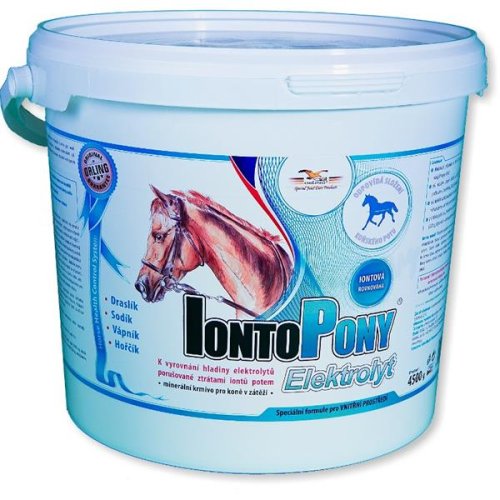 Iontopóny Elektrolyt je minerálne doplnkové krmivo pre kone s obsahom minerálnych solí a bielkovín určené na vyrovnanie elektrolytickej bilancie porušovanej stratami iónov potom v období zvýšenej záťaže. V priebehu fyzickej záťaže stráca organizmus koňa v závislosti na intenzite a dĺžke trvania záťaže, teplote a vlhkosti prostredia 5 až 15 litrov tekutín vo forme potu. Pot koňa je silne hypertonický a obsahuje značné množstvo iónov sodíka, draslíka a chlóru, vysoké percento bielkovín (prevažne albumínov) a ďalej významné množstvo iónov vápnika a horčíka. Ideálny obsah vody a iónov v tele má svoju hornú a dolnú hranicu. V tomto fyziologickom rozmedzí prebiehajú všetky deje výmeny látok a energií ideálnym spôsobom. Akákoľvek zmena nad a pod toto ideálne rozmedzie má okamžitý priamy vplyv na výkonnosť. Tento negatívny vplyv je o to väčší, čím je väčšia zmena v obsahu týchto látok. Optimalizácia obsahu iónov a vody v tele je základným predpokladom ako pre efektivitu tréningového procesu, tak aj pre kvalitu vlastného výkonu. IONTOPÓNY Elektrolyt svojim zložením napodobňuje zloženie konského potu a navracia tak do organizmu látky skutočne potom vylúčené v optimálnom množstve a pomere. Rozsah dávkovania umožňuje príjem práve takého množstva elektrolytov, ktoré kôň pri danom tréningu stratí. Podávanie IONTOPÓNY Elektrolyt udržuje homeostázu organizmu koňa, stabilizuje výkonnosť a prispieva k rýchlejšej regenerácii koňa. Indikácia: