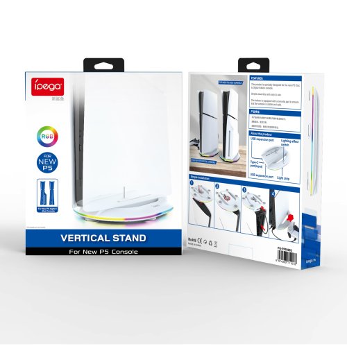 iPega P5S035SA vertikálny stojan pre PlayStation 5 Slim / Pre Štýlový a praktický doplnok pre tvoju konzolu! Vertikálny stojan iPega P5S035SA dodá PlayStation 5 Slim alebo Pre stabilitu a atraktívny vzhľad vďaka plnému RGB podsvieteniu.