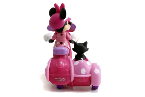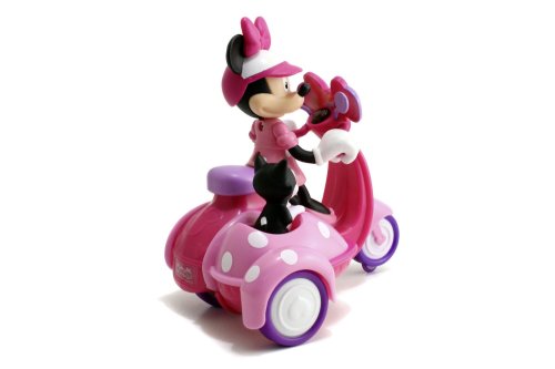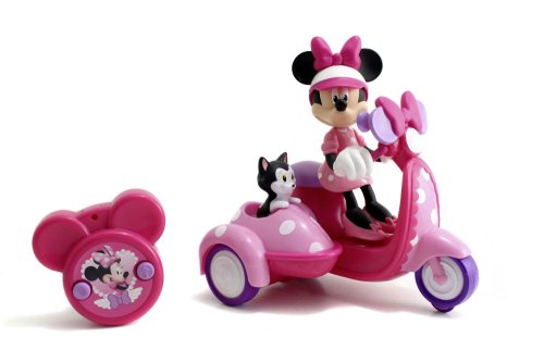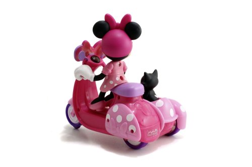 IRC scooter so sajdkárou s figúrkou Minnie a mačičkou, 1 kanál, chod vpred, vzad so zatáčaním. Veľkosť 19 cm. Batéria ovládač 2x 1,5 V R03, scooter 3x 1,5 V R6, batérie nie sú súčasťou.