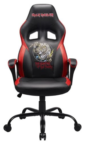 Štýlová herná stolička pre fanúšikov kapely Iron Maiden poskytuje dokonalú oporu a pohodlie aj pri dlhom sedení pri počítači. Je vyrobená z kvalitnej syntetickej kože, ktorá je príjemná na dotyk, a navyše sa ľahko čistí. Na celkové nastavenie výšky stoličky je k dispozícii plynový piest triedy 3, ktorý vyniká dlhou trvanlivosťou. Nosnosť stoličky je až 120 kg .