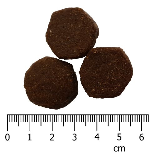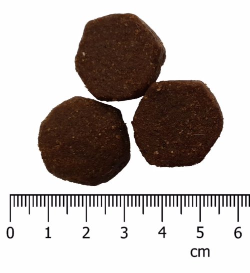 Analytické zložky : Proteín 26 %, hrubý tuk 14 %, hrubá vláknina 3,5 %, hrubý popol 7,5 %, vápnik 1,4 %, fosfor 1,1 %, vlhkosť 10 %.