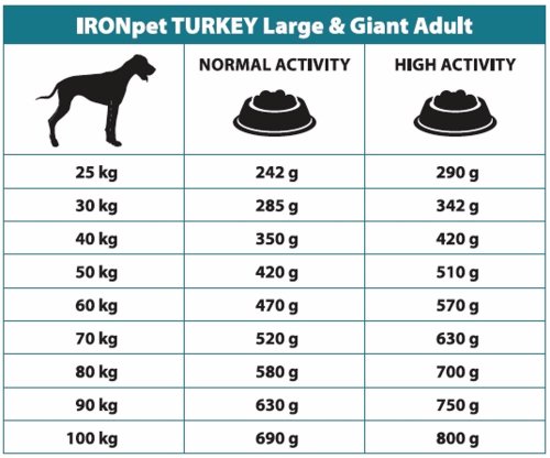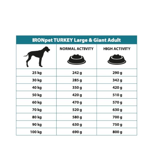 Jediný zdroj živočíšnych bielkovín s vyváženým pomerom bielkovín a tuku je použité morčacie mäso - monoproteínová strava výrazne znižuje riziko vzniku intolerancií a potravinových alergií. IRONpet Dog Adult Large & Giant Turkey (Krocan) neobsahuje lepok a kuracie mäso je teda hypoalergénne, ľahko stráviteľné a vhodné aj pre psov s citlivým trávením.