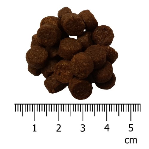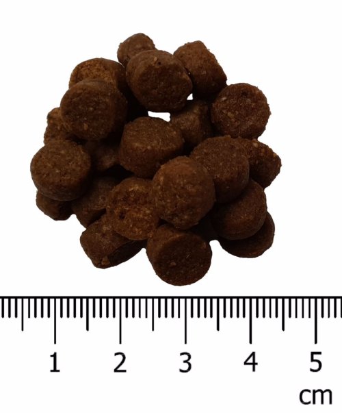 Analytické zložky : Proteín 27 %, hrubý tuk 15 %, hrubá vláknina 3,5 %, hrubý popol 7,5 %, vápnik 1,3 %, fosfor 1,0 %, vlhkosť 10 %.