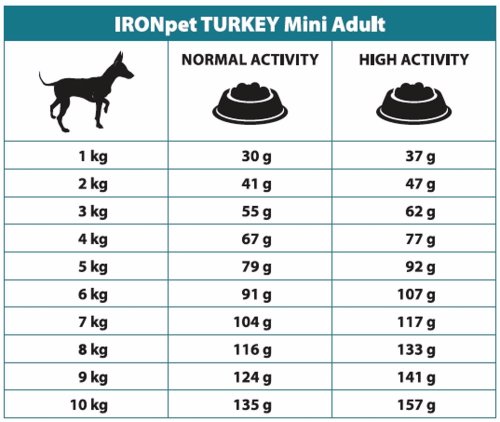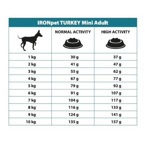 Jediný zdroj živočíšnych bielkovín s vyváženým pomerom bielkovín a tuku je použité morčacie mäso - monoproteínová strava výrazne znižuje riziko vzniku intolerancií a potravinových alergií. IRONpet Dog Adult Mini Turkey (Krocan) neobsahuje lepok a kuracie mäso je teda hypoalergénne, ľahko stráviteľné a vhodné aj pre psov s citlivým trávením.