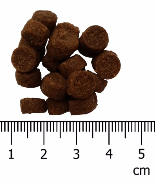 Analytické zložky: Proteín 28 %, hrubý tuk 16 %, hrubá vláknina 3,5 %, hrubý popol 7,5 %, vápnik 1,2 %, fosfor 0,9 %, vlhkosť 10 %.