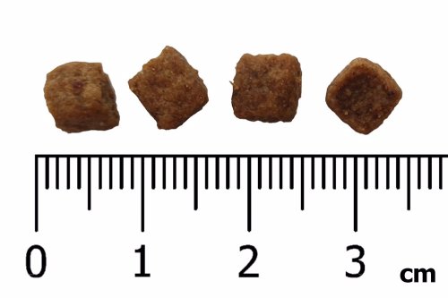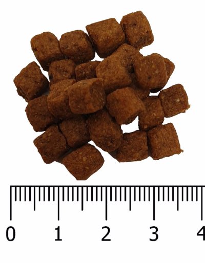 Analytické zložky: Proteín 28 %, hrubý tuk 17 %, hrubá vláknina 3,5 %, hrubý popol 7,5 %, vápnik 1,2 %, fosfor 0,9 %, vlhkosť 10 %.
