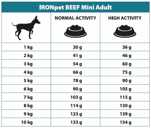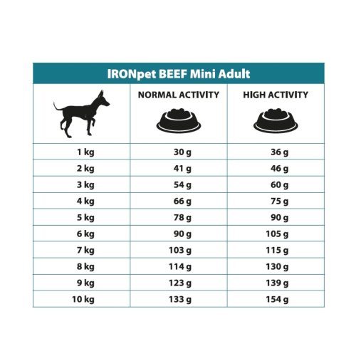 Jediný zdroj živočíšnych bielkovín s vyváženým pomerom bielkovín a tuku je použité hovädzie mäso – monoproteínová strava výrazne znižuje riziko vzniku intolerancií a potravinových alergií. IRONpet Dog Mini Adult Beef (Hovädzie) neobsahuje lepok a kuracie mäso je teda hypoalergénne, ľahko stráviteľné a vhodné aj pre psov s citlivým trávením.