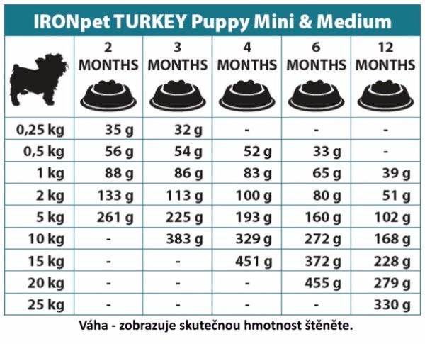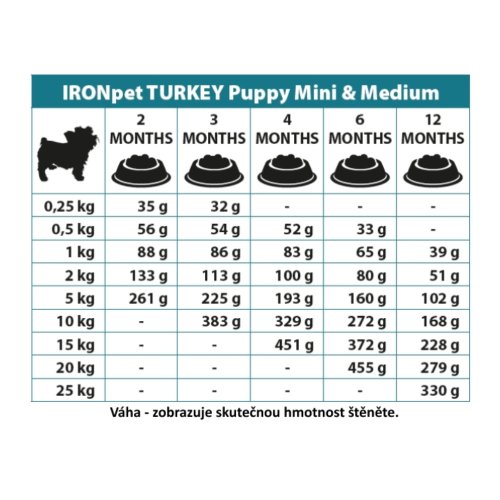 Jediný zdroj živočíšnych bielkovín s vyváženým pomerom bielkovín a tuku je použité morčacie mäso - monoproteínová strava výrazne znižuje riziko vzniku intolerancií a potravinových alergií. IRONpet Dog Puppy Mini & Medium Turkey (Krocan) neobsahuje lepok a kuracie mäso je teda hypoalergénne, ľahko stráviteľné a vhodné aj pre psov s citlivým trávením.