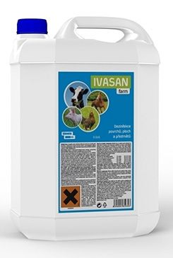 IVASAN Farm je nový dezinfekčný vodou riediteľný prípravok určený na dezinfekciu a hygienickú sanitáciu povrchov, priestorov aj technologických zariadení v chovoch hospodárskych zvierat a dezinfekciu dopravných prostriedkov slúžiacich na prevoz zvierat a skladísk krmív.
