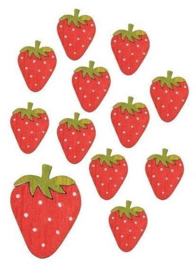 Jahody s lepíkom drevené 3 cm, 24ks v krabičke