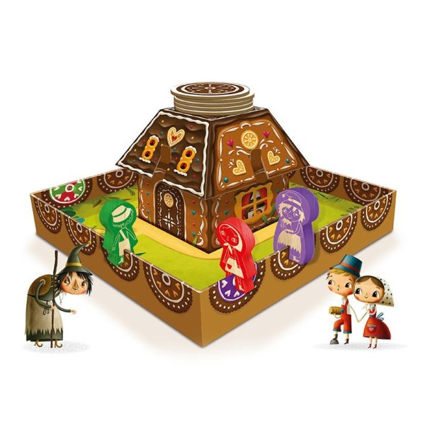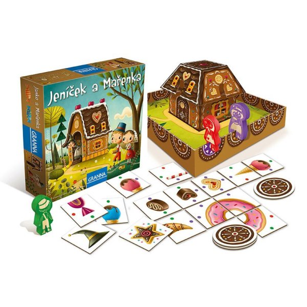 Po dlhom blúdení v temnom lese narazili Janko a Marienka na chalúpku z rôznych sladkostí. Hladno sa do nich pustili, ale začala ich naháňať strašná ježibaba. Vy im však môžete pomôcť! Skladajte spoločne kompletné obrázky sladkostí, aby ste za každý z nich získali žetón perníčku. Ak zhromaždíte 5 žetónov, skončí hra vašim víťazstvom. Nesmie vás ale dobehnúť ježibaba! Kooperatívna hra pre 2-4 hráčov od 6 rokov umožňuje dve rôzne ťažké herné varianty.