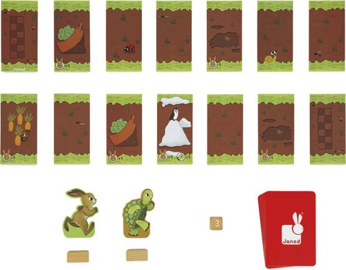 Nemá zmysel behať? V tejto doskovej hre na motívy známej rozprávky o zajaci a korytnačke musí hráč dobehnúť do cieľa skôr ako zajac. Hra pre jedného hráča, ktorý si tieto neuveriteľne bláznivé preteky môže zahrať sám. Hráč je korytnačka, pomalší, ale mazanejší ako zajac! Trať plná nástrah a akčné karty pre každú postavu - to sľubuje závod bez zľutovania. Dosková hra, ktorá vyžaduje premýšľanie a stratégiu. Zajac je odhodlaný doraziť prvý! Obsahuje: 14 doštičiek, ktoré tvoria hraciu dosku, 12 akčných kariet, 1 kocku a 2 postavy, návod.