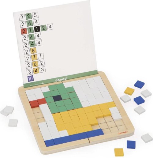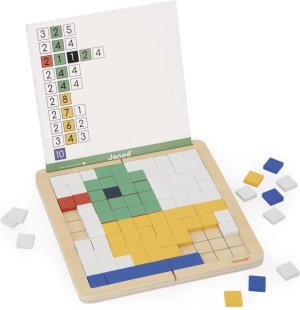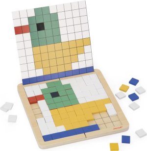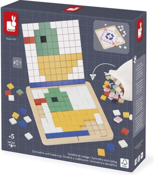 Objavte zábavnú a vzdelávaciu kódovaciu hru Pozor, žaba!, ktorá ponúka hneď 4 rôzne herné režimy, vďaka ktorým sa deti naučia základy logiky, rozvíja koncentráciu aj priestorovú predstavivosť: Kopírovanie – Deti pokladajú farebné dlaždice priamo na predlohu. Reprodukcia – Deti skladajú vzor z dlaždíc vedľa predlohy. Symetria – Úlohou je doplniť chýbajúcu polovicu obrázku zrkadlovo podľa modelu. Kódovanie – Pomocou farebných a číselných kódov na karte odhaľujú skrytý obrázok. Táto drevená edukatívna hra podporuje kreatívne myslenie, rozvoj matematických zručností a schopnosť riešiť problémy. Ideálne pre samostatné hranie alebo vo dvojici. Vyrobené z kvalitného certifikovaného FSC® dreva a kartónu.