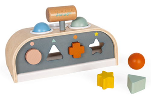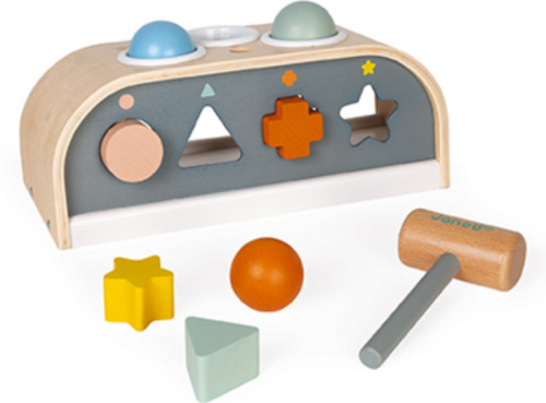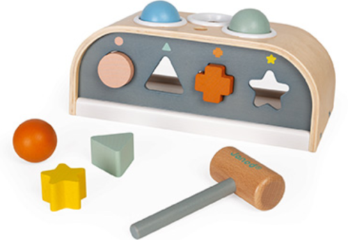 Čo by mohlo byť zábavnejšie ako zatĺkanie guličiek do otvorov? Aby bola hračka ešte zábavnejšia, sú tu k dispozícii ďalšie 2 aktivity. Dieťa sa učí rozpoznávať 4 rôzne tvary a musí ich roztriediť do správnych otvorov. Tiež sa učia poznávanie farieb. Hra je vhodná aj pre najmenších, vďaka svojim jemným farbám a zaobleným tvarom. Vyrobené z dreva s certifikátom FSC® z udržateľných lesov. Vhodné pre deti od 12 mesiacov.