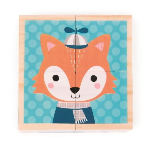 Kocky pre najmenších! Moje prvé kocky - Zvieratká z lesa je zábavná hra zo 4 drevených kociek, z ktorých si môžete vytvoriť 4 portréty lesných zvieratiek (líška, králik, zajac, psík). Viete ako tieto zvieratká vyzerajú? Dokážete ich z jednotlivých kociek poskladať? Kocky sú skvelým darčekom k prvým narodeninám pre Vaše najmenšie ratolesti. Kocky sú dodávané v originálnom a praktickom kartónovom obale. Vhodné pre deti od 12 mesiacov.