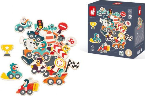 S touto sadou 24 drevených magnetov môžete pretekať na všetkých magnetických povrchoch! Magnetické vozidlá si nájdu čestné miesto na chladničke alebo detskej nástenke a bláznivé závodné dobrodružstvá budú určite nasledovať. Sada sa môže pochváliť rôznymi typmi áut, motorkou, nevyhnutným ťahačom a zvieratkovými pretekármi pripravenými súťažiť.
