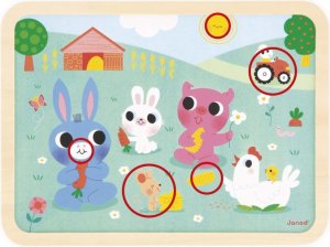 Dieliky sú umiestnené na drevenej doske s vyfrézovaným okrajom na uľahčenie skladania. Skladanie puzzle rozvíja fantáziu a podporuje rozvoj motoriky. Po poskladaní obrázku nájdi rozdiely v predlohe.
