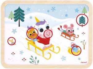 Dieliky sú umiestnené na drevenej doske s vyfrézovaným okrajom na uľahčenie skladania. Skladanie puzzle rozvíja fantáziu a podporuje rozvoj motoriky. Po poskladaní obrázku nájdi rozdiely v predlohe.