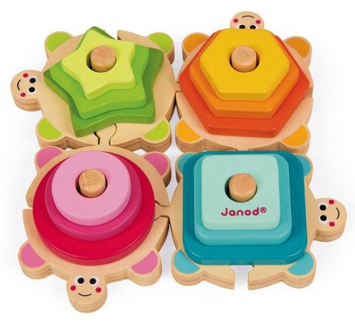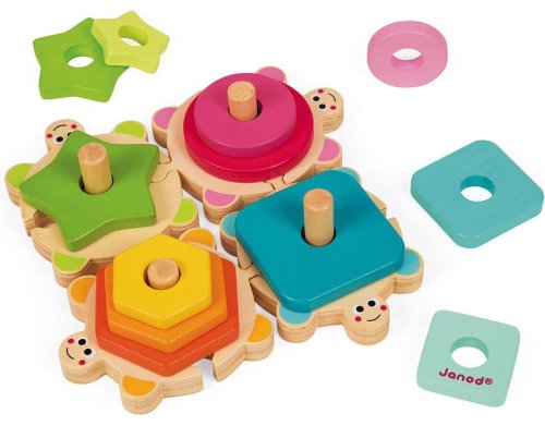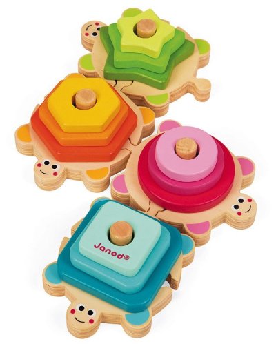 Nechajte sa uniesť farebným svetom farieb a tvarov! Nádherné farebné drevené vkladacie puzzle v tvare korytnačky sú skvelou pomôckou na rozvoj jemnej motoriky. Zároveň sa deti učia farbám a základným tvarom, vkladaním farebných drevených kúskov rôzneho tvaru na príslušné vyčnievajúce miesta na chrbte korytnačiek. Korytnačky sa dajú od seba oddeľovať a spájať. Vhodné pre deti od 12 mesiacov.
