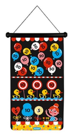 Zdokonaľujte sa v hádzaní šípok a získajte čo najviac bodov s presným cieľom! Obojstranný magnetický terč je možné zavesiť na stenu, kľučku alebo strom. 6 magnetických šípok bez hrotov, ktoré zabránia zraneniu a umožnia si tak zahrať hru už od ranného veku. Body, kam mieriť, sú na jednej strane usporiadané do kruhu a na druhej strane rozmiestnené po celej ploche. Táto hra na zručnosť a jemnú motoriku je viac, než len zábava pre deti a dospelých. Je ideálny na rozvoj šikovnosti a sústredenia vášho dieťaťa. Pre deti vo veku od 4 do 8 rokov. Rozmer produktu: 44 x 4 x 65 cm.